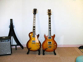 ちょぃと 一休み! Ibanez AR 330CS と 仲良く並ぶ Les Paul |