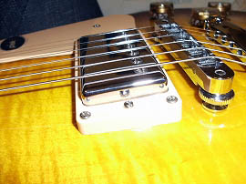 Tune-O-Matic ブリッジ を ぎりぎりまで 下げる。 (現在 6弦が マイクに当たってます! ww) Stopbar テイルピース を 少し上げて 弦のテンションを 弱くします。 ここら辺の調整は 経験の無い人は いじらないで下さいね! まねして 壊れても 当方では責任は取れません!! あくまでも 自己責任で! ヨロシクおねがいします! ^^v |